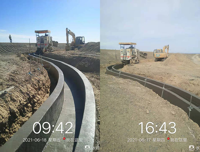 新疆哈密排水溝、路緣石、路肩滑模施工-NC1300滑模攤鋪機(jī) |