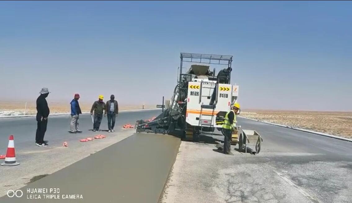 NC1300滑模攤鋪機在甘肅敦煌做的2米寬路肩