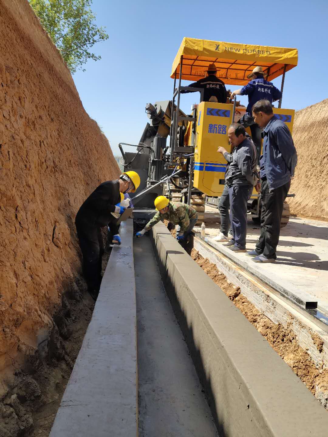 NC1300混凝土滑模攤鋪機(jī)在山西武鄉(xiāng)施工的排水溝